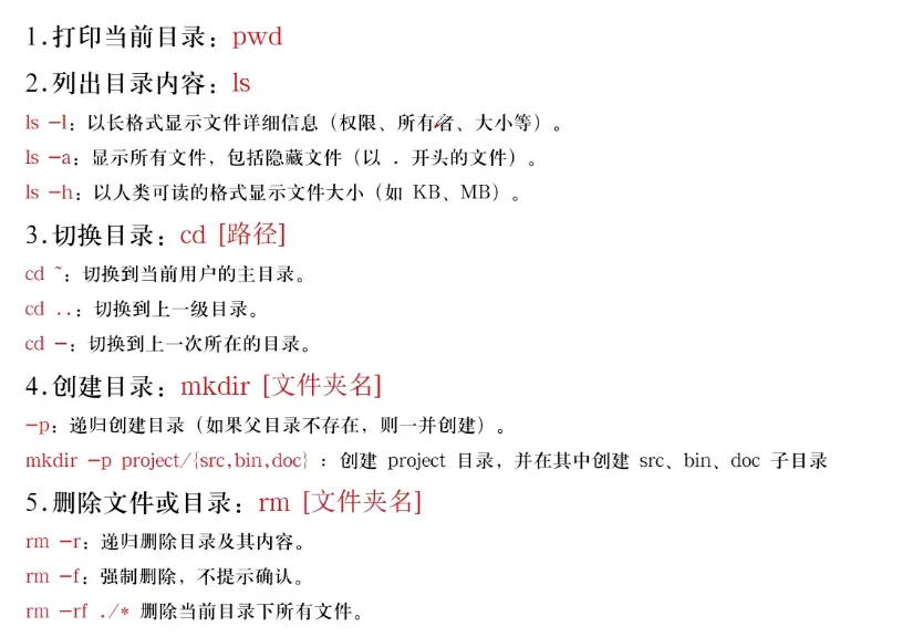 rm [文件夹名]rm -r: 递归删除目录及其内容。rm -f: 强制删除,不提示确认。- 示例: